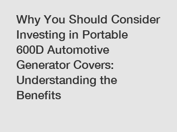 Why You Should Consider Investing in Portable 600D Automotive Generator Covers: Understanding the Benefits