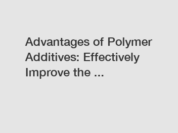 Advantages of Polymer Additives: Effectively Improve the ...