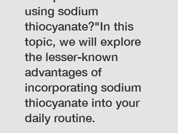Unexpected benefits of using sodium thiocyanate?"In this topic, we will explore the lesser-known advantages of incorporating sodium thiocyanate into your daily routine.