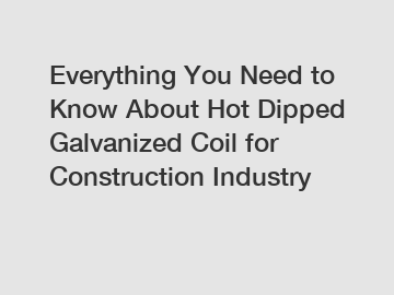 Everything You Need to Know About Hot Dipped Galvanized Coil for Construction Industry