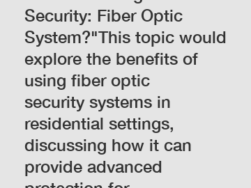 Revolutionizing Home Security: Fiber Optic System?"This topic would explore the benefits of using fiber optic security systems in residential settings, discussing how it can provide advanced protectio