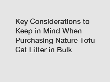 Key Considerations to Keep in Mind When Purchasing Nature Tofu Cat Litter in Bulk