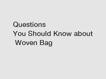 Questions You Should Know about Woven Bag